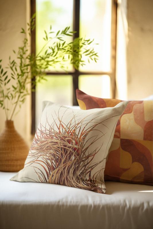 "Grass in the Wind" Luxurious 20x20 Faux Suede, Printed Throw Pillow – Home Décor for your Living Room, Bedroom or Office.