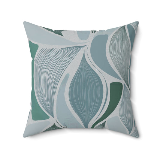 "Mod Leaves"- Ice Blue. Luxurious 20x20 Faux Suede, Printed Throw Pillow – Home Décor for your Living Room, Bedroom or Office.