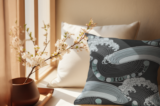 "Storm at Sea" - Blue. Luxurious 20x20 Faux Suede, Printed Throw Pillow – Home Décor for your Living Room, Bedroom or Office.