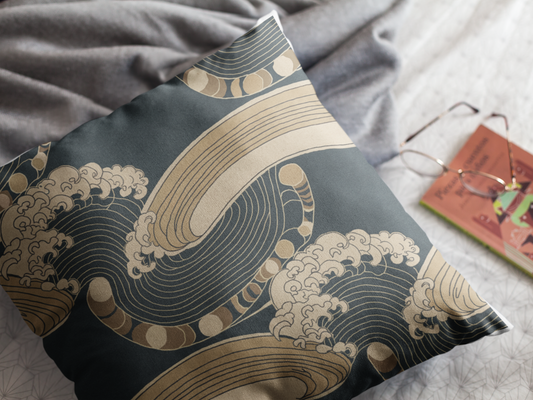 "Storm at Sea" - Gold. Luxurious 20x20 Faux Suede, Printed Throw Pillow – Home Décor for your Living Room, Bedroom or Office.